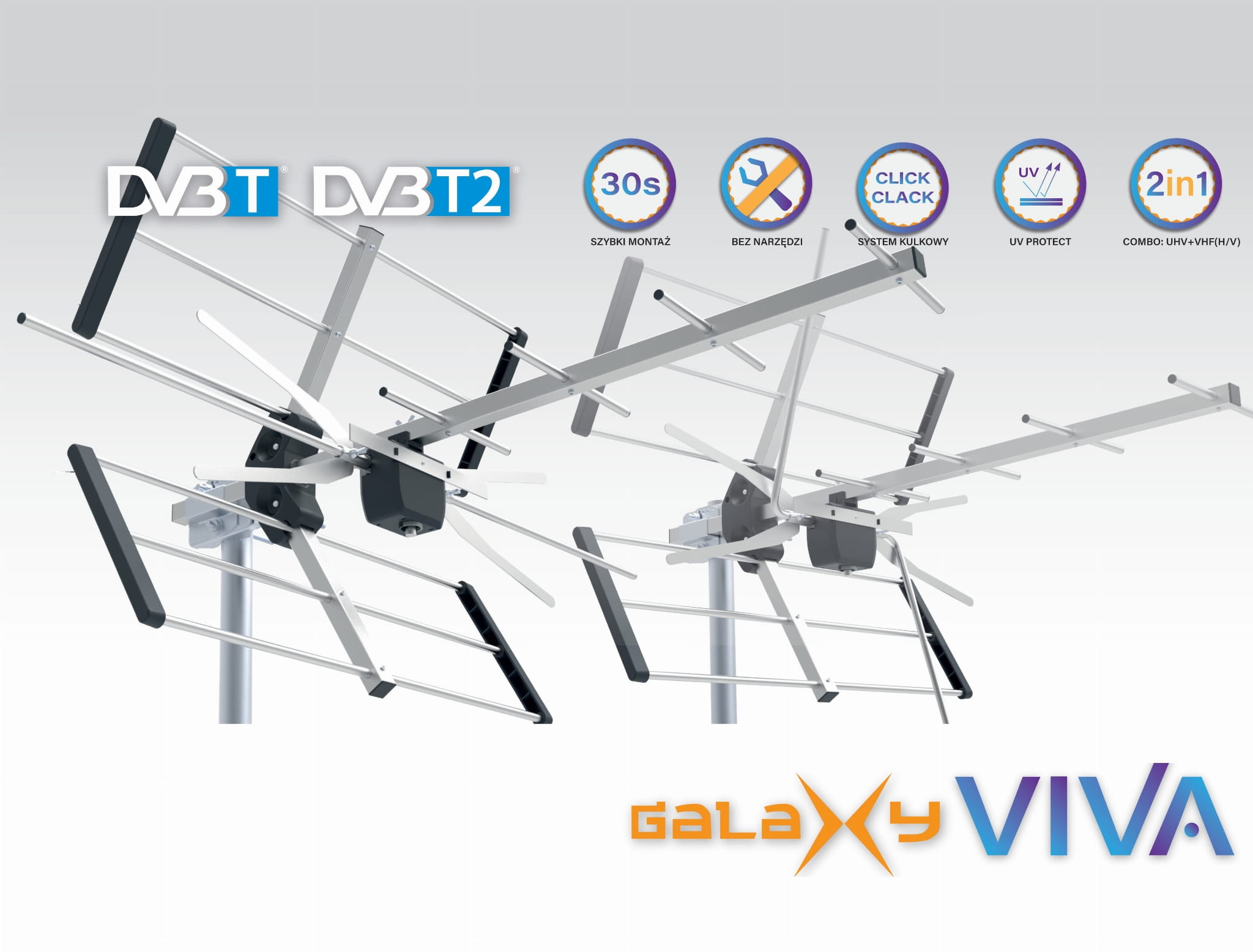Bardzo dobrze wykonana telewizyjna antena Galaxy Viva typu Combo.