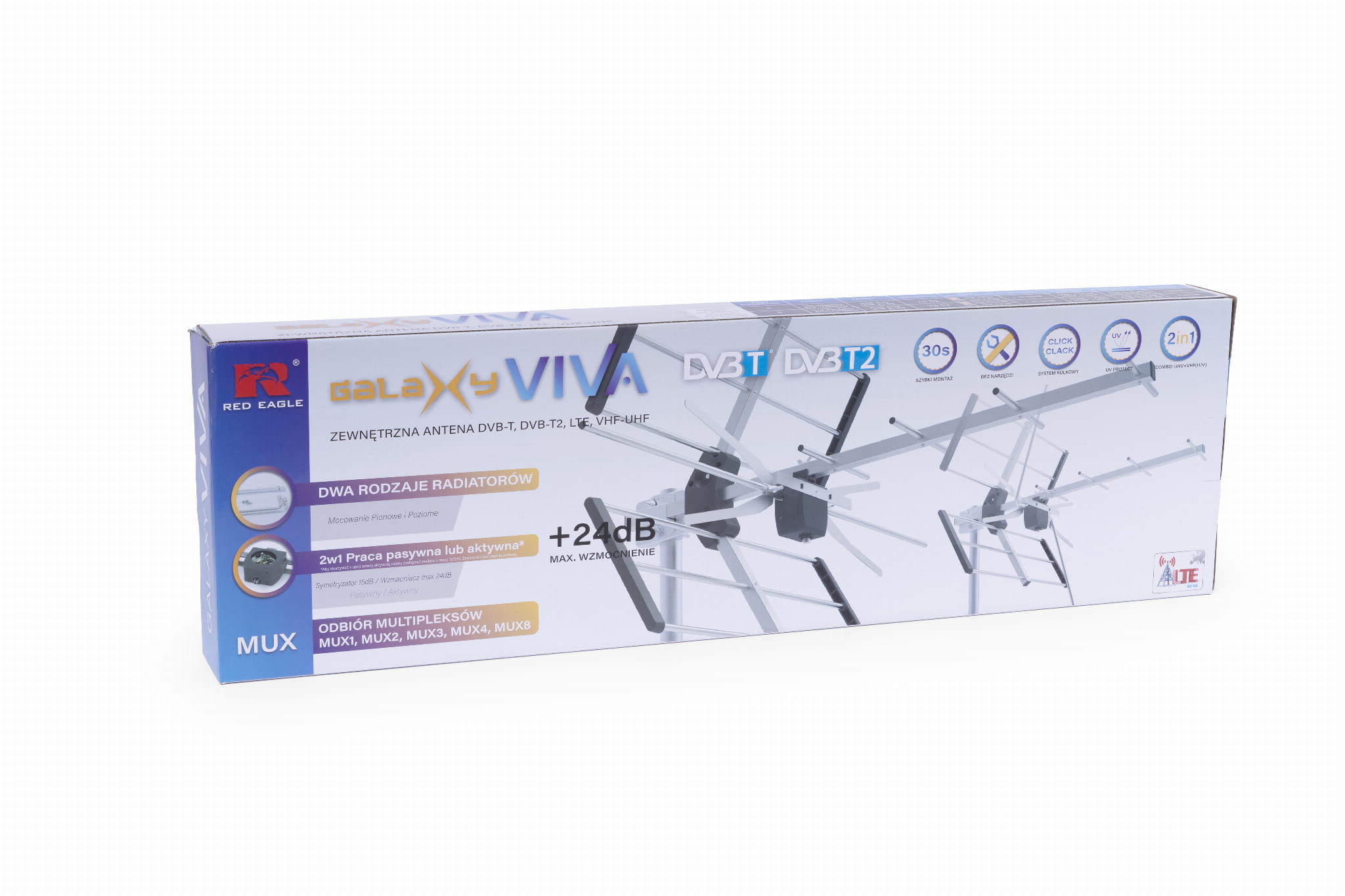 Zaprojektowana specjalnie do cyfrowego odbioru z naziemnych multipleksów DVB-T/T2 z pasma UHF (470-790MHz) oraz MUX8 (polaryzacja pozioma lub pionowa) z pasma VHF (174-230MHz).